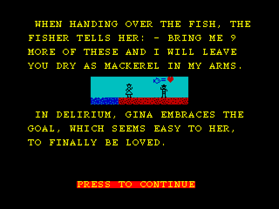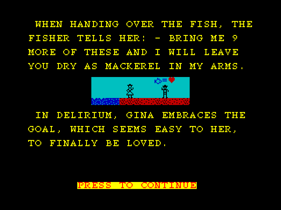 Written in Boriel ZX Basic, Varina expands the original concept into a story-driven game that unfolds level by level, almost like a comic strip brought to life.