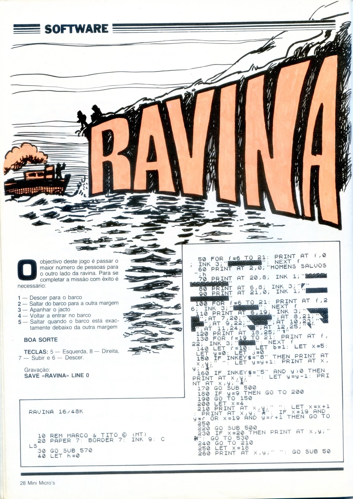 Varina is a small ZX Spectrum game inspired by Ravina, a Sinclair BASIC type-in program published in 1985 in Portuguese Mini Micro’s magazine.